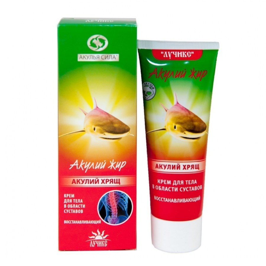 • одним из эффективных компонентов крема является акулий хрящ, точнее его вещество – хондроитин, который активно стимулирует регенерацию хрящевой ткани, удерживает влагу, стимулирует выработку синовиальной жидкости (вещество, образующееся в суставах, для смягчения трения подвижных частей)