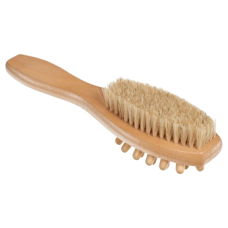 Двойная щетка для сухого массажа с щетиной кабана средней жесткости незаменимый помощник для профилактики возникновения целлюлита и растяжек. Натуральный ворс обеспечивает комфортное воздействие без царапин. Антицеллюлитная щетка имеет две поверхности, последовательное использование которых дает антицеллюлитный, лимфодренажный и подтягивающий лифтинг эффект в домашних условиях. Регулярный массаж сухой щеткой стимулирует кровообращение и лимфоток, активизирует метаболизм, снимает отеки, способствует детоксикации организма. Использование щетки создает легкий пилинг кожи тела, предупреждает врастание волос. После сухого массажа кожа становится гладкой и упругой. Массажная щетка для расслабления, самомассажа и похудения отлично прорабатывает поверхность спины, шеи, ног, ягодиц и бедер. Деревянный массажер имеет удобную отполированную деревянную ручку и петельку для подвешивания на крючок.