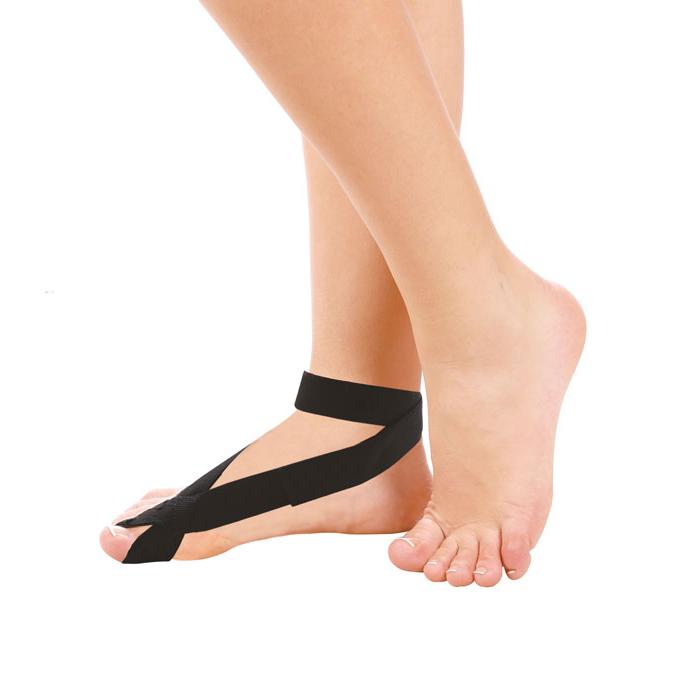 - наденьте петлю на первый палец стопы так, чтобы короткая лента располагалась по внутреннему краю стопы