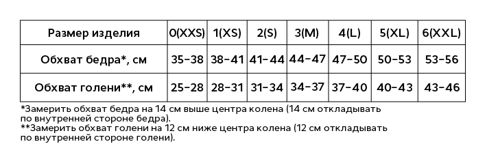 Для подбора размера следует измерить окружность нижней трети бедра на 15 см выше середины надколенника и верхней трети голени на 5 см ниже середины надколенника.
