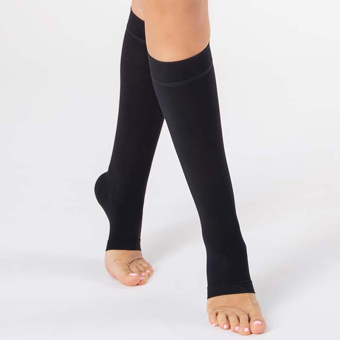 Если стопа не соответствует заявленному нормальному размеру, рекомендуется подбор изделия с открытым носком.