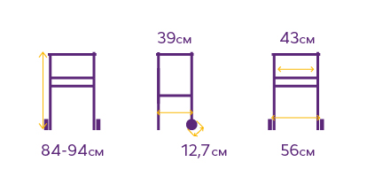 - регулируемая высота от 84 до 94 см с шагом 2,5 см